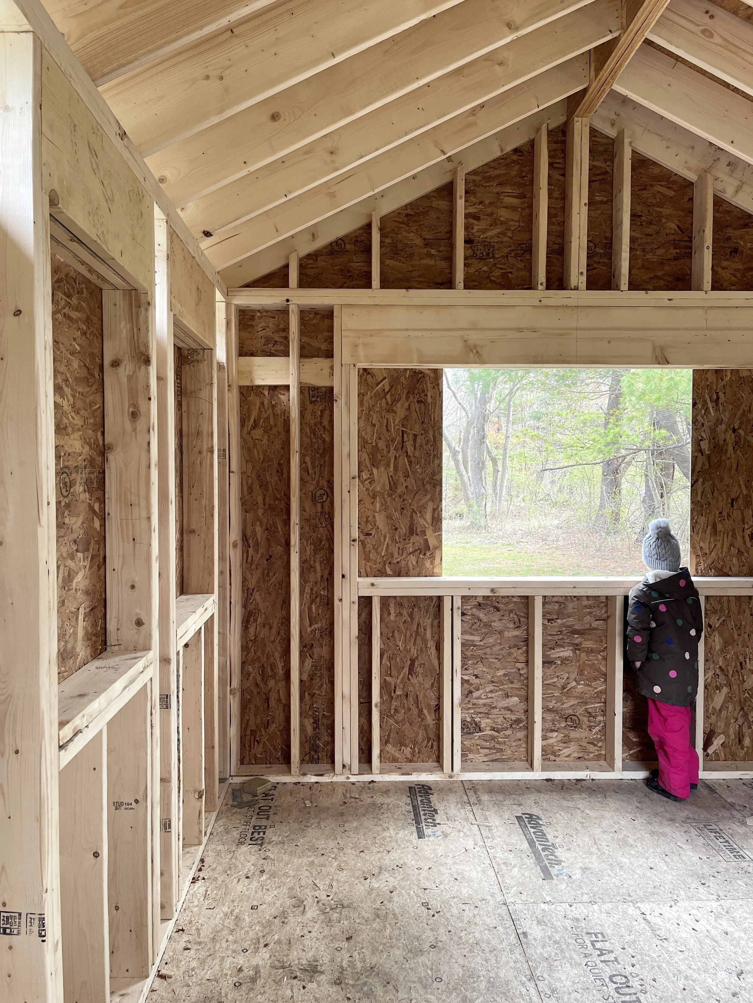 Earlier this year Jess and I made the tough decision to give up our beautiful shared studio. We loved working together (and still plan to!) but with young kids the cost and commute were no longer working well. She found a great little office space closer to home and Eric and I decided to embark on a shed/studio build-out for both LHD and Hanson Renovations. It’s been really fun doing a project for just us and the kids have loved being a part of it too.